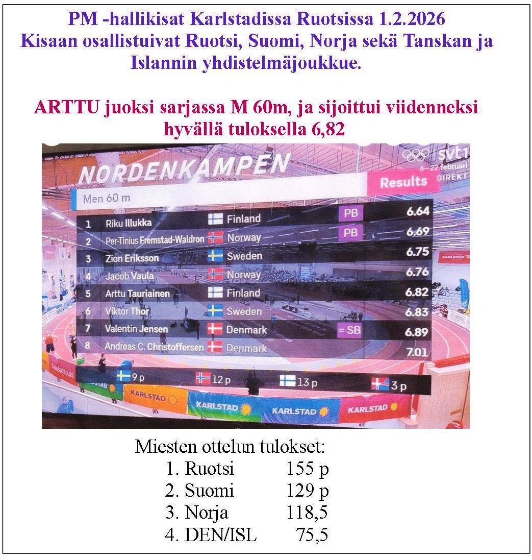 Arttu valittiin edustamaan Suomea PM-halleihin Ruotsiin. Kisa käydään 1.2.